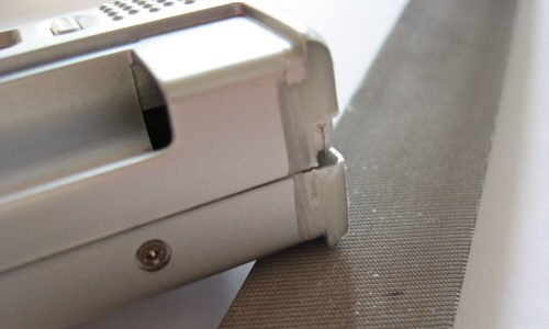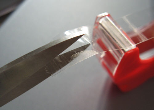 Step 4 - To fix the window to the housing, office tape like Scotch-Clear-Tape is used. The tape is usually too broad. Cut stripes in half, approx. 5-6mm (0.2 inch) broad.