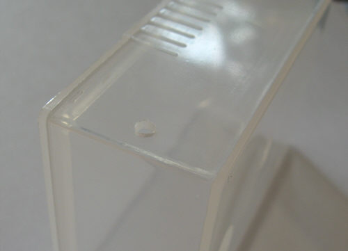 Step 2 - Drill the holes for the collar straps on the oustide of the top of the housing. A 2mm (0.08 inch) diameter should be sufficient but tight enough for the straps.