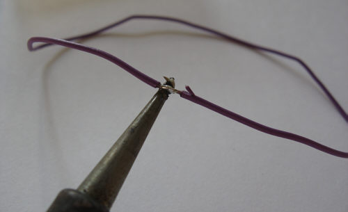 Schritt 6 - Jetzt den Riemen zur Befestigung am Halsband zusammenlöten. Die Drahtlänge ist ca. 21-23cm, abhängig davon wie eng die Kamera am Halsband sein soll.