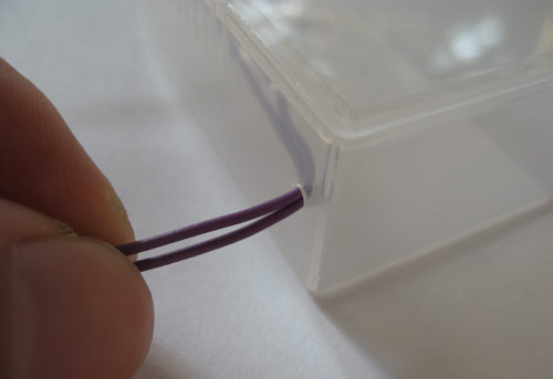Schritt 2 - Die Löcher fuer die Halsbandaufhängung an den Außenseiten der Oberseite bohren. Ein Druchmesser von 2mm sollte ausreichend aber trotzdem noch eng genug sein für die Drähte.