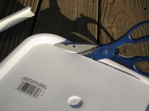 Step 2: The advantage of thin plastic is that it can be cut with scissors. At first the area is cut out which is required for the enclosure.