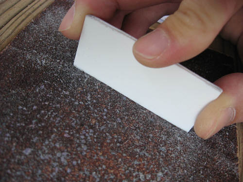 Schritt 6: Was nicht passt wird angepasst. Mit Schmirgelpapier aus einer planen Unterlage lassen sich die Kunsstoffteile schnell noch auf das passende Mass korrigieren.