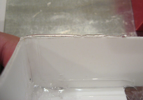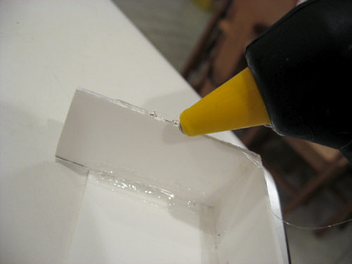 Step 12: Prepare the addition of the top surface. To do this, apply a glue line along the top of the 3 side walls.