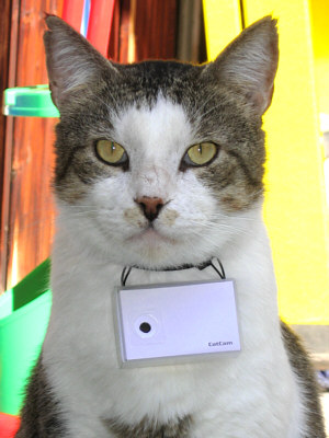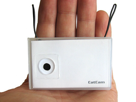 Function: Watch your pets adventures like on Reality-TV! The Video CatCam® records video clips in an adjustable time sequence/interval. It is designed to be worn on the collar of an animal (cat) but may find use for general surveillance tasks as well. The device records with the installed 16 GB memory about 4 continuous hours of video. This time can be spread over several days using interval recording.